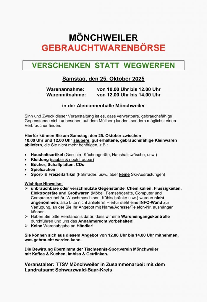 Warenannahme: von 10.00 Uhr bis 12.00 Uhr